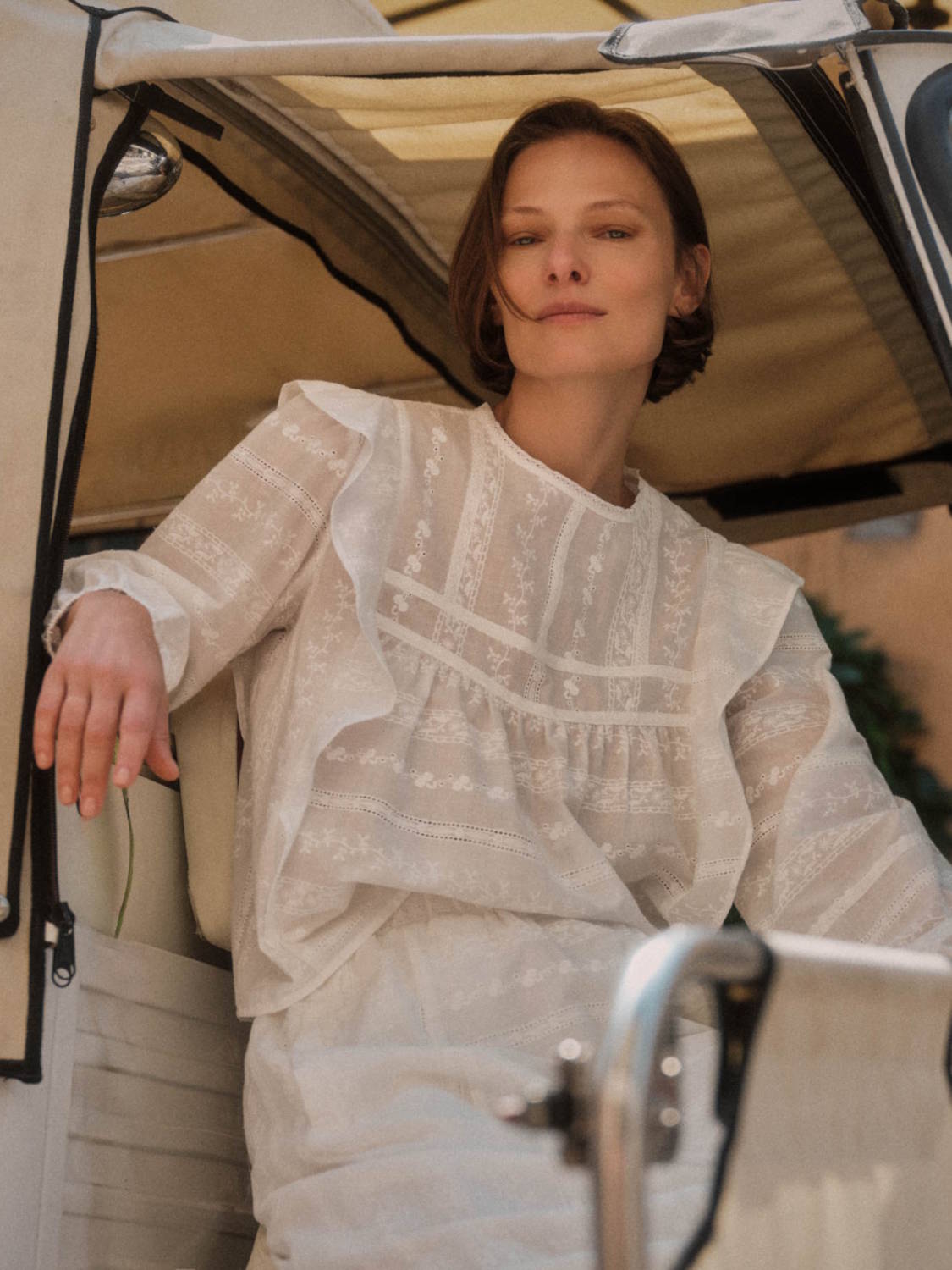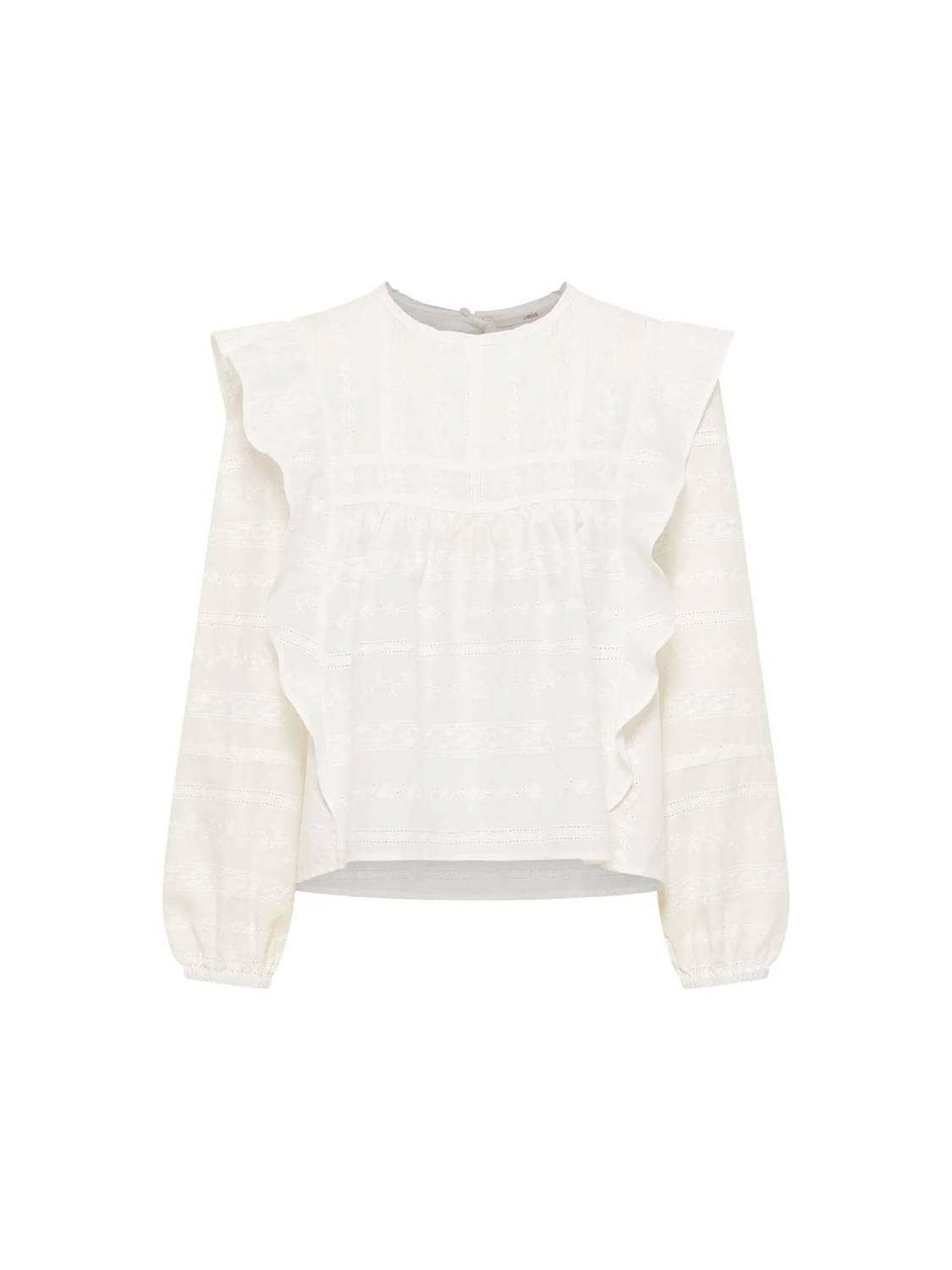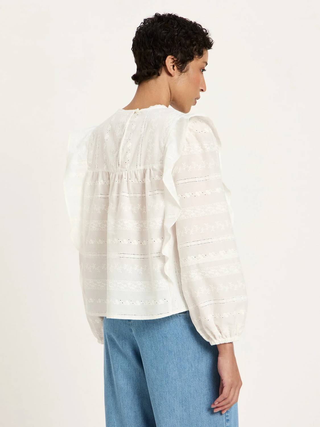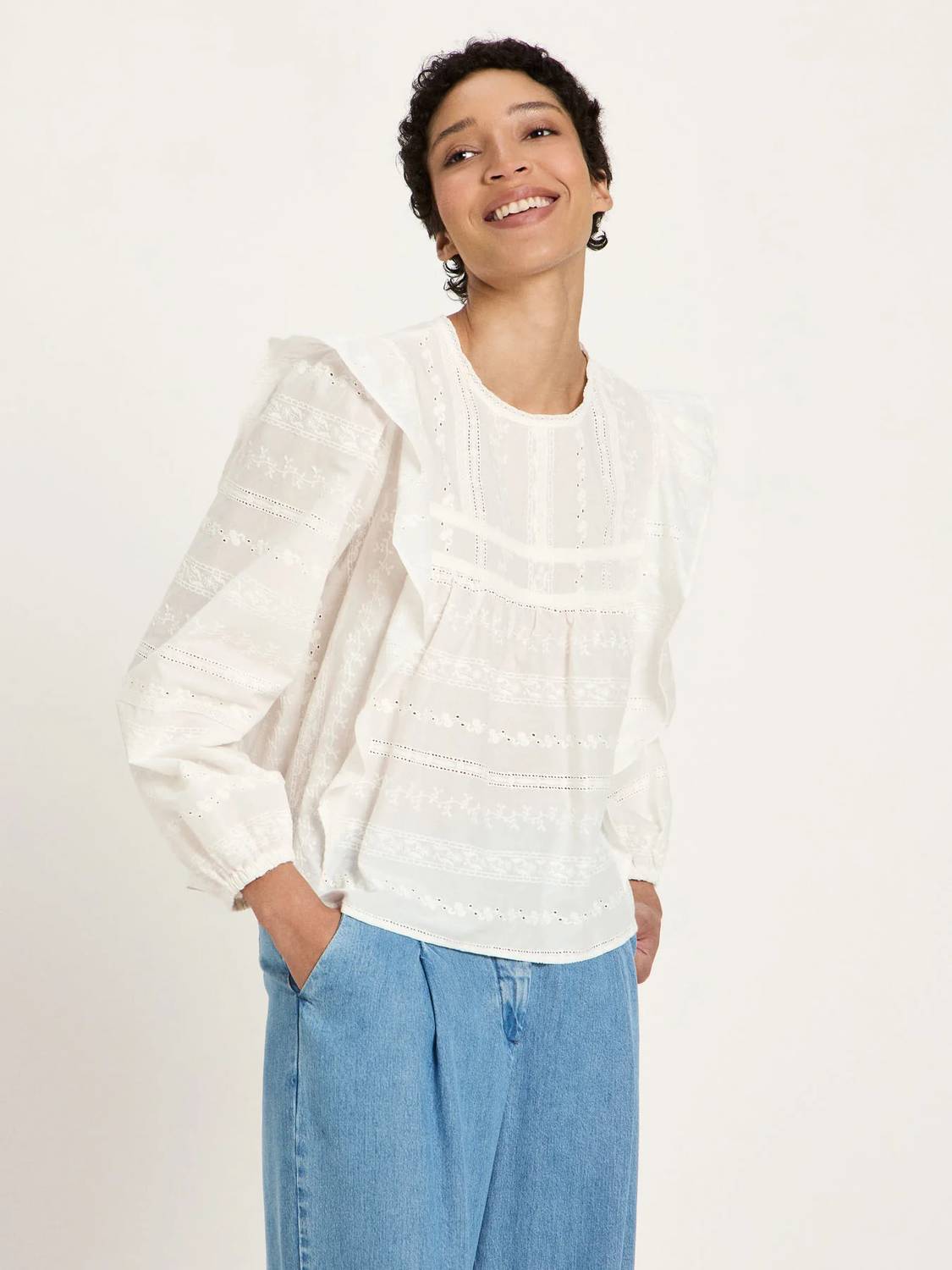 Stickereibluse mit Volant aus Biobaumwolle off-white