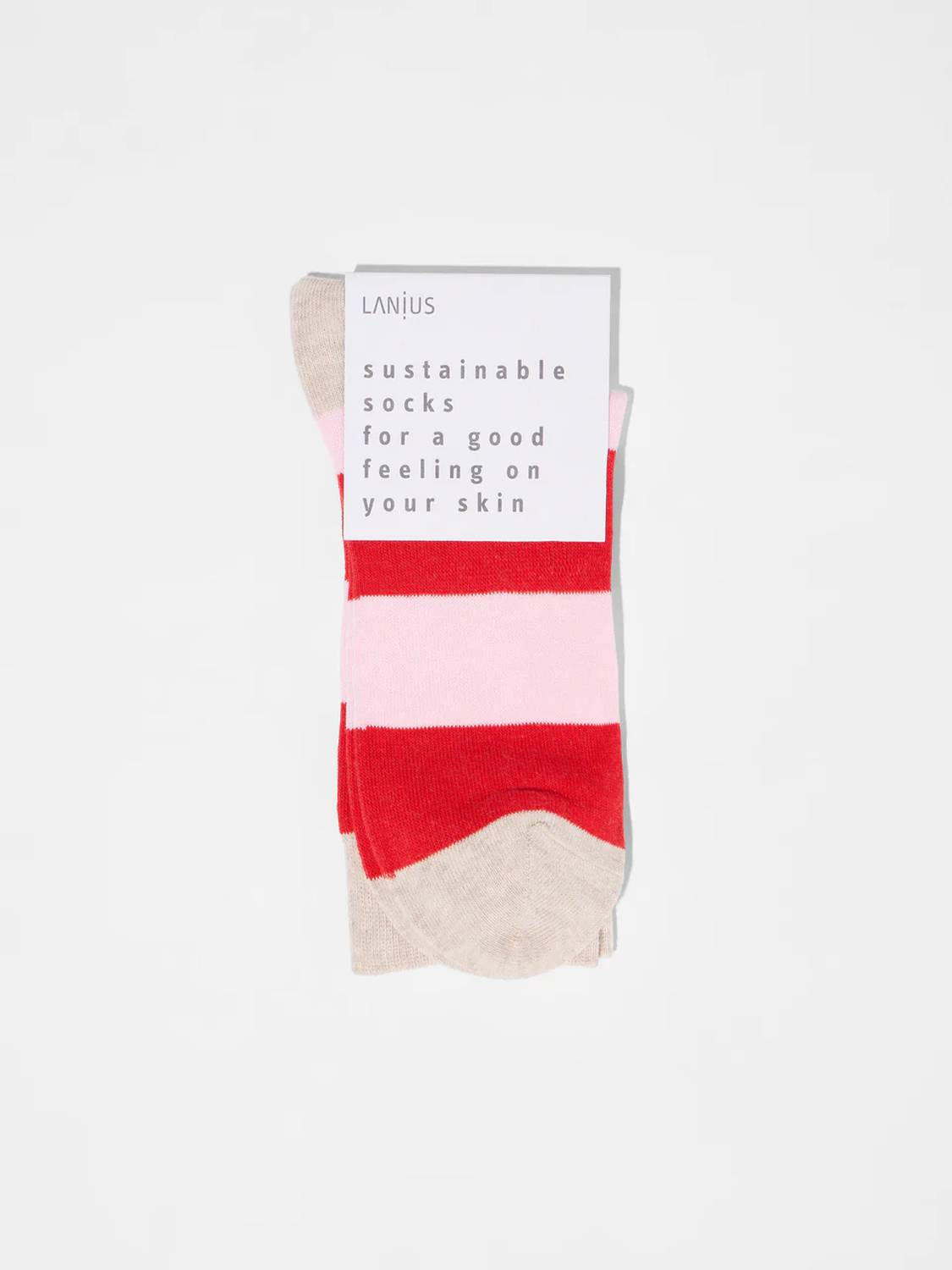 Socken mit Blockstreifen aus Bio-Baumwolle GOTS red alert / rose