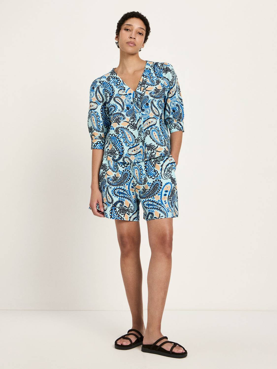 3/4-Arm-Bluse aus Leinen print paisley mint