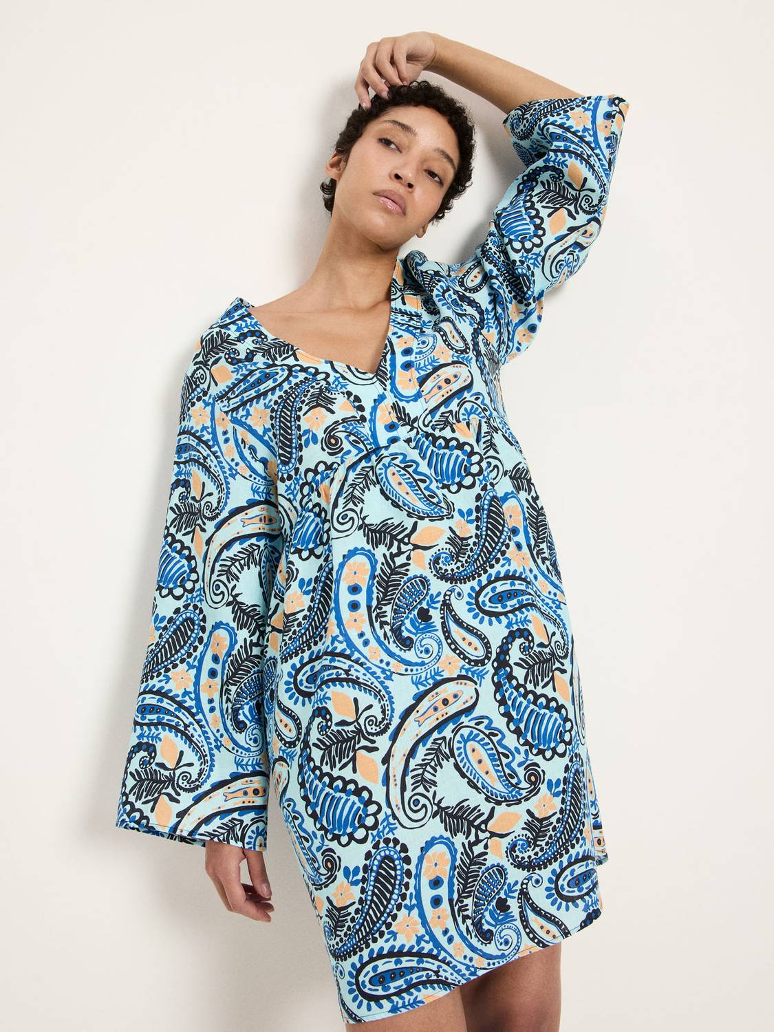 Kleid aus Leinen print paisley mint