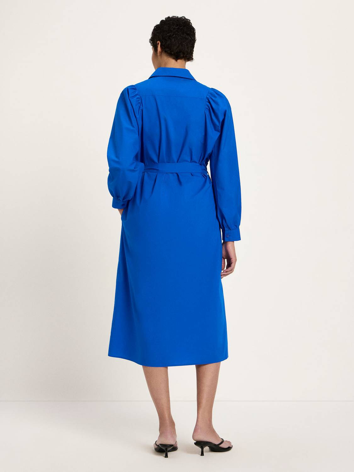 Klassisches Hemdblusenkleid mit Kräuselung am Ärmelansatz aus weicher GOTS-zertifizierter Bio-Baumwolle.