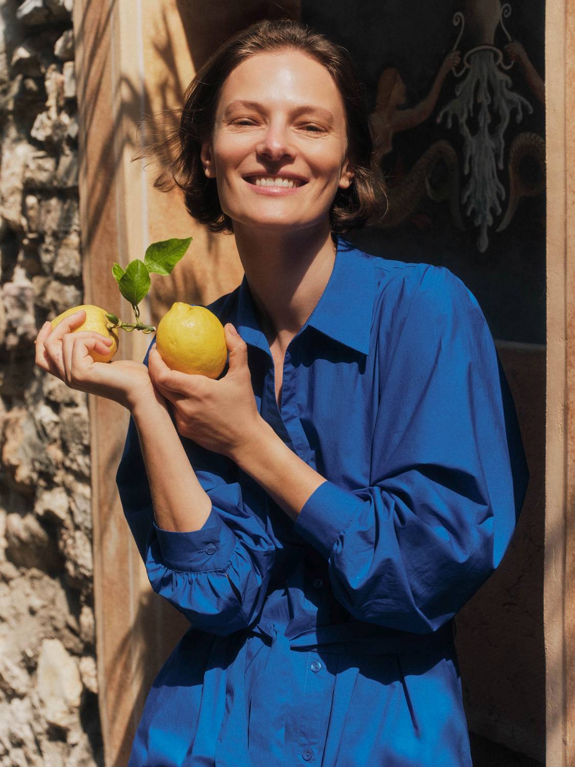 Kleid mit Kräuseln aus Bio-Baumwolle lapis