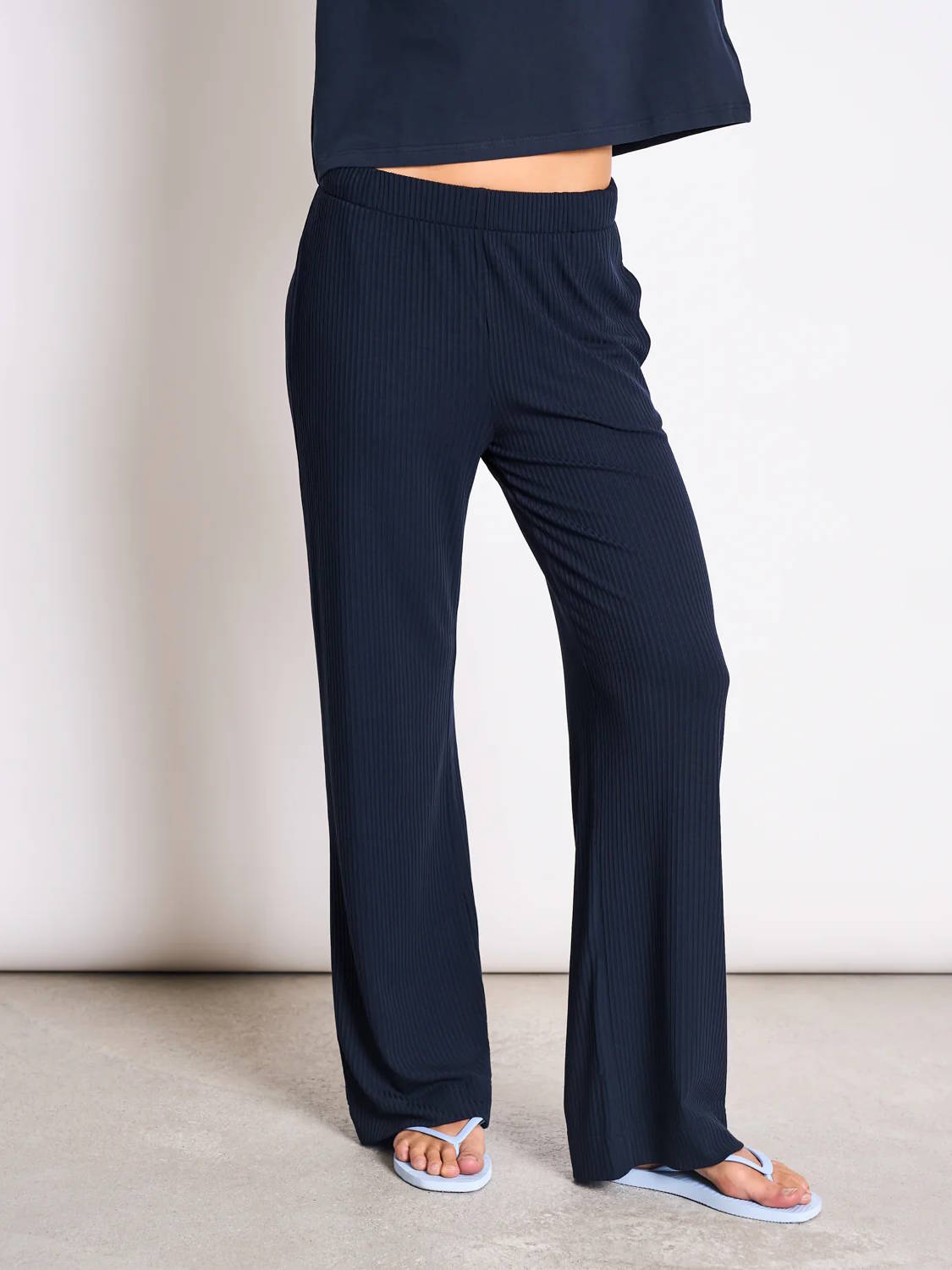 Weite, bequeme und leicht fließende Hose in Rippenoptik.