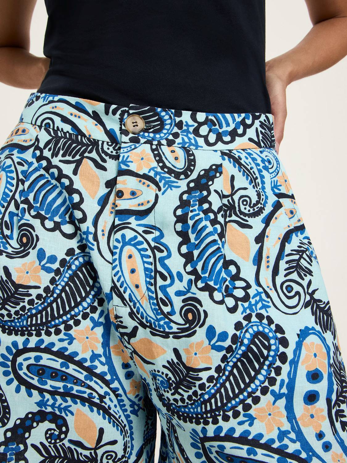 Shorts mit Bundfalte aus Leinen print paisley mint
