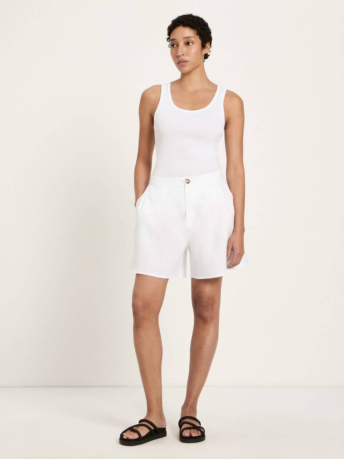 Shorts mit Bundfalte aus Leinen white